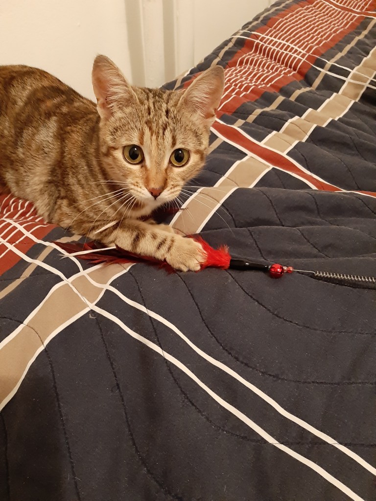 餌を食べた後は、猫じゃらしで遊ぶのも大好きだった!