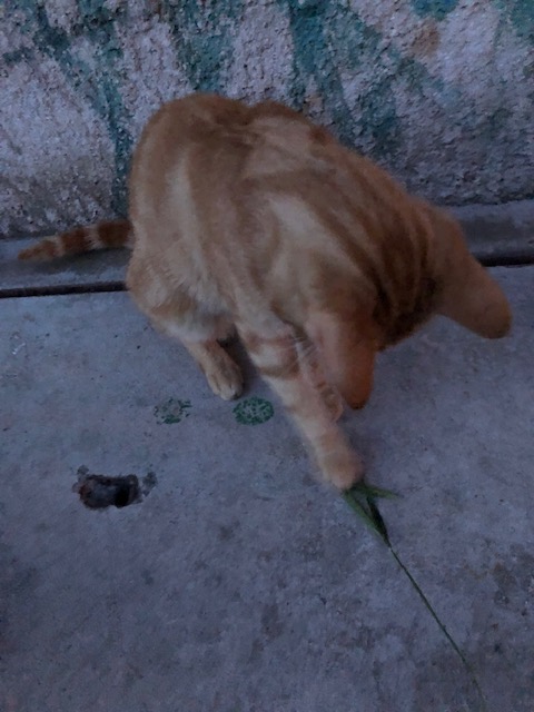 案の定お腹を空かせた小虎がやってきてカリカリを食べ、その後すこーしだけ天然の猫じゃらし