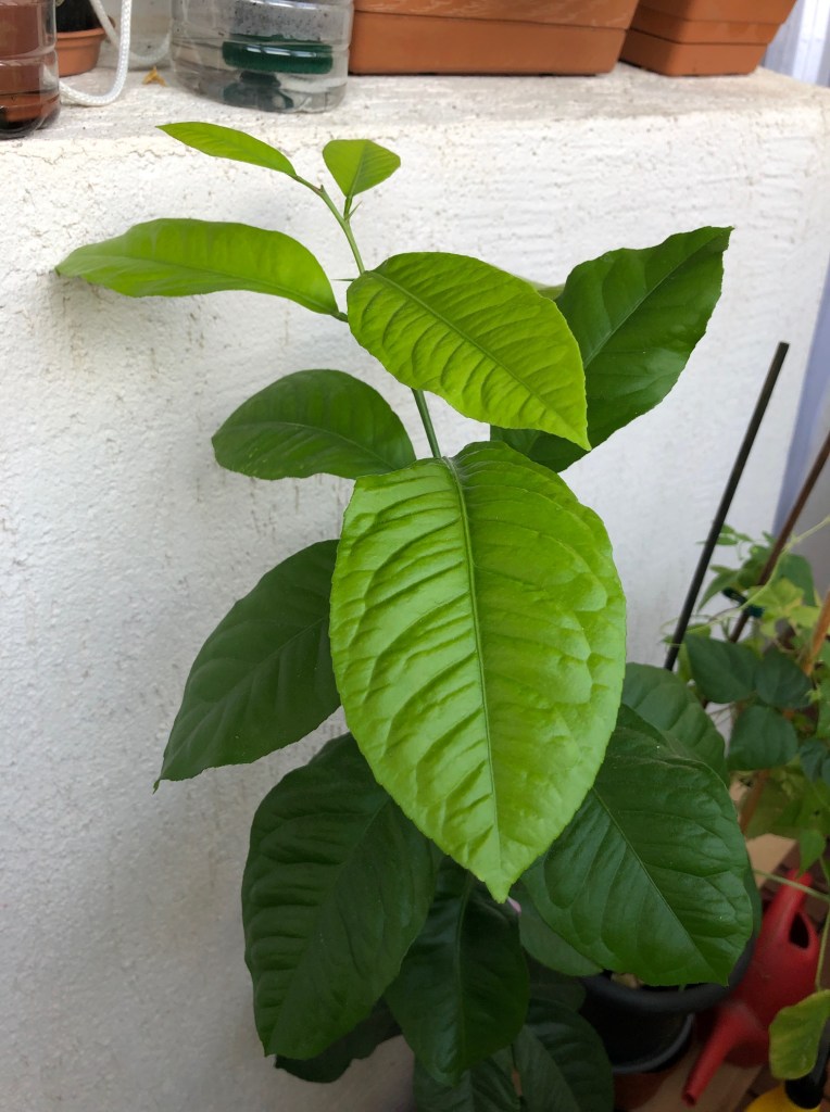豆さんの他に、我が家では普通に買ったレモンの種から出てきたレモンちゃん4本が3年目の初夏を迎えた。確か10つぶの種を植えてみたのだが、元気に成長したのはこの4本。何にでもネーミングをするのが好きな息子に、これまた口から出まかせの名前をつけられていたが、もうどの子がどの子か訳が分からなくなり、2年目からは特に名前はない。