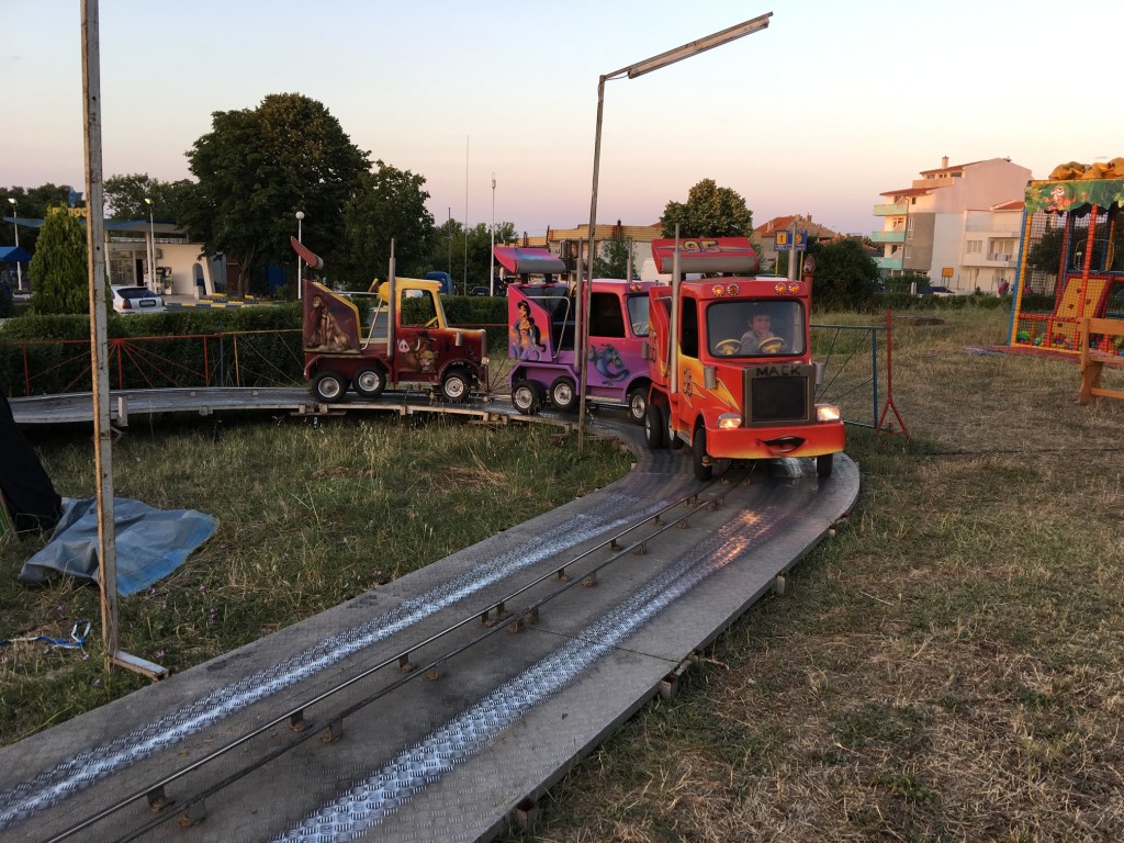 遊園地などの娯楽施設が少ないブルガリアでは、所々に移動遊園地がやって来る。アフトポルには夏の間いつもこの移動遊園地が設置されていて(夏以外は多分ないと思われる)、お子達には興奮が抑えられない超エキサイティングな遊び場なのである。