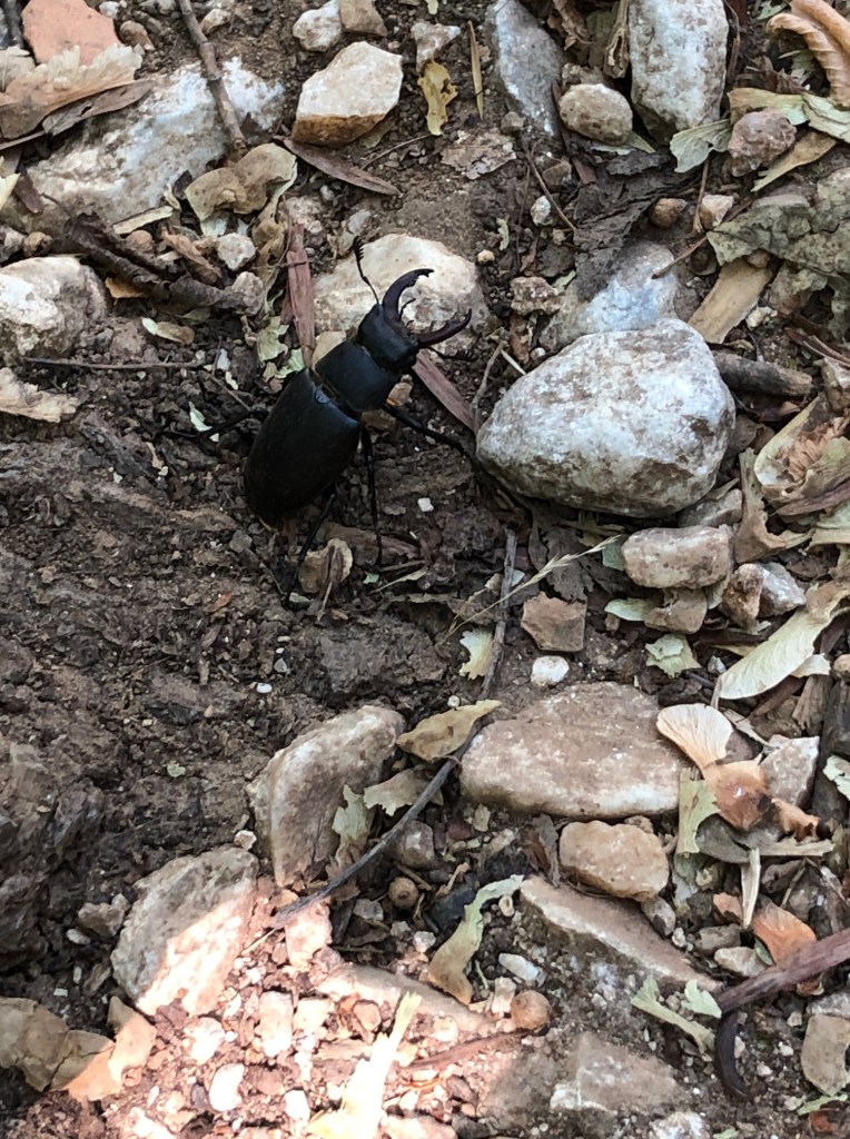 蝉は見えなかったが、クワガタを見た!超でかい青虫も見た!これは今までに見た青虫の中で一番巨大な青虫だった。「はらぺこあおむし」でしか青虫を知らない息子は「ぎええーーー」と恐怖の声を発し、その後しばらくへっぴり腰で歩いていた。