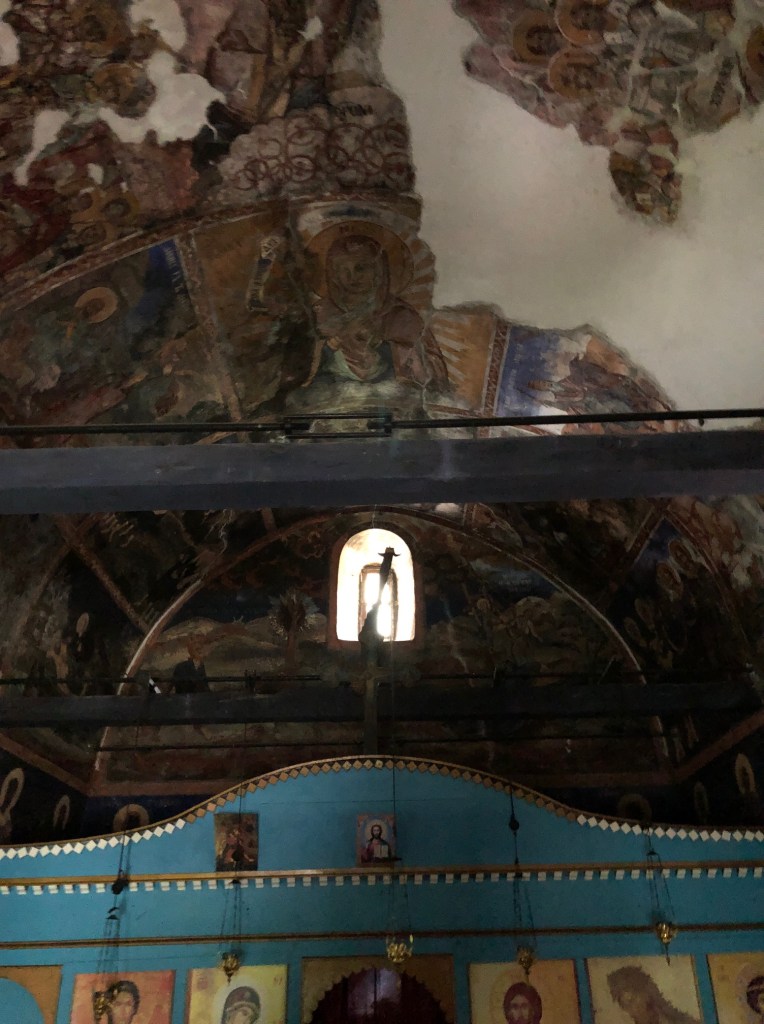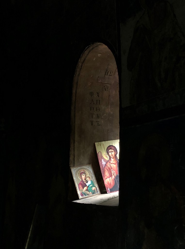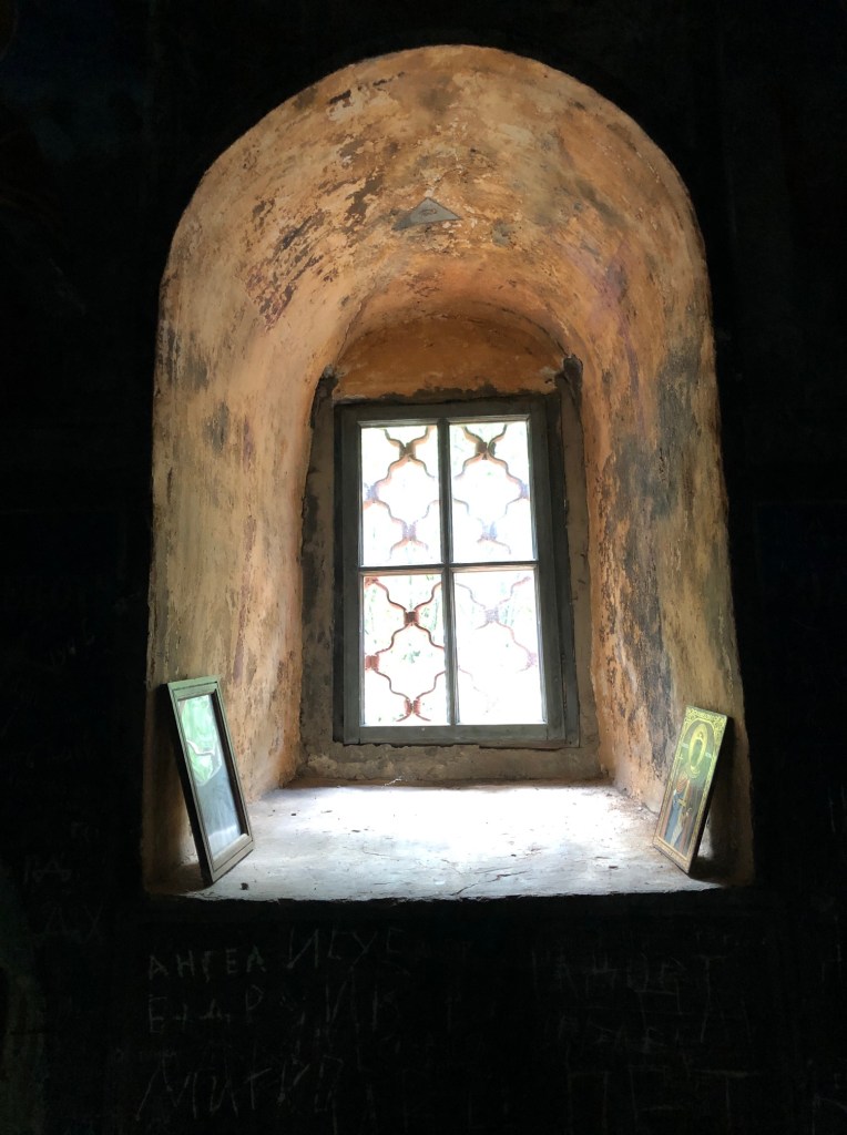 この道中が、これまた風光明媚で空気もおいしい。すれ違う人たちと「ドーバルデン(こんにちは)」と声をかけ合いながら歩くこと片道およそ1時間ちょっと。いよいよ折り返し点の小さな教会にたどり着く。伝説によれば、かつてオスマン帝国が攻めてきた時に、時の修道僧が教会の大事なイコンを山奥深くに隠したそうだ。忘れ去られたイコンは、何世紀か経って、偶然とある羊飼いに見つけられたそうである。そのイコンはその後バチコヴォ修道院へ移されたが、今でもその場所は神聖な場所として、訪れる人も多い。その場所のすぐ近くに小さな古い教会があり、中には世界遺産であるソフィアのボヤナ教会の壁画を彷彿とさせる古い壁画があった。