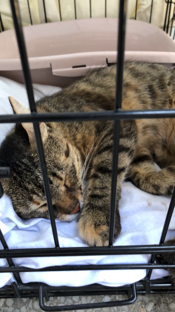 さて、てくてくやって来たちゃんこは、キャリーの中にご飯を入れてみると頭からてくてくとキャリーの中に入り、いとも簡単にキャリーの扉を閉めることが出来た。第一候補の小虎は失敗したものの、第二候補のちゃんこが来てくれたので、さっそく獣医さんに翌日の手術予定の猫ちゃんが代わっても良いかどうか電話をし、問題がないということだったので胸をなでおろしたのだった。
