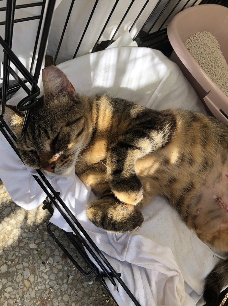 痛い思いをさせて悪かったね、また時々うちに泊まりにおいで、と言ってキャリーを開けると、なかなか帰っていかない。そうこうしているうちに、第三候補だった琥珀ちゃんに取って代わって第三候補に繰り上がった小春がやって来た。小春ちゃんはまだ1歳になっていない子で、この子も6月辺りに出産をしているはずだった。子猫が子猫を産んだような。。。子猫を見たことは一度もなく、小春ちゃんは赤ちゃんがいるはずなのに、前と変わらずいつもその辺をウロウロしており、子育てをちゃんとしているのかなと心配はしていた。最近はオス猫に追いかけられている様子も目にしていて、次の発情期が来ている気配がしていたため、候補者に上がっていたのだった。そしてちゃんこの次に手術の予約をもう済ませていたため、ちょうどこの日小春ちゃんを家に連れて帰らなくてはならないことになっていた。
