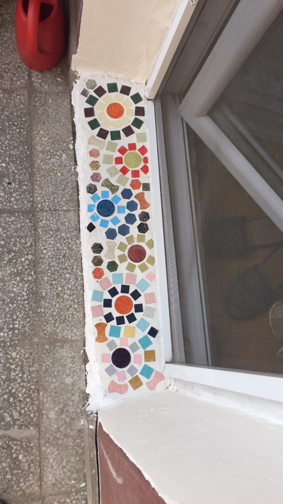去年の夏は、お父さんから何十年も前の綺麗なモザイクタイルを譲り受けたので、ベランダをちょっとレモントしてみた。レモント好きな血を私から受け継いでいる息子と一緒に試行錯誤しながらの挑戦だった。