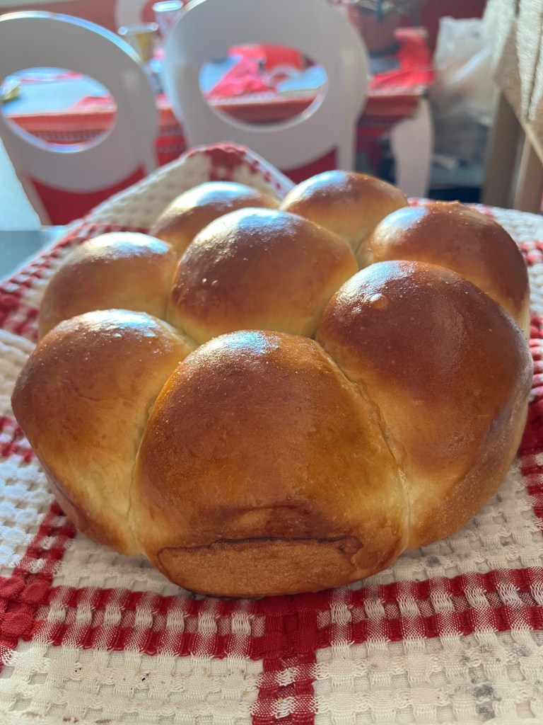 さてクリスマスイヴの食卓にはたくさんのご馳走が並ぶのだが、私の担当は専らピトカと呼ばれる大きなパン。クリスマスのピトカにはおみくじを入れる。たいていは、バニツァの中におみくじを入れるのが普通らしいけれど、うちの伝統はおみくじ入りのピトカである。このピトカは、イヴの食卓の年長者から順に好きな部分を取り分け、その中にそれぞれのおみくじを見つけるといった具合だ。毎年このおみくじは、私の独断と偏見により作成されている。
