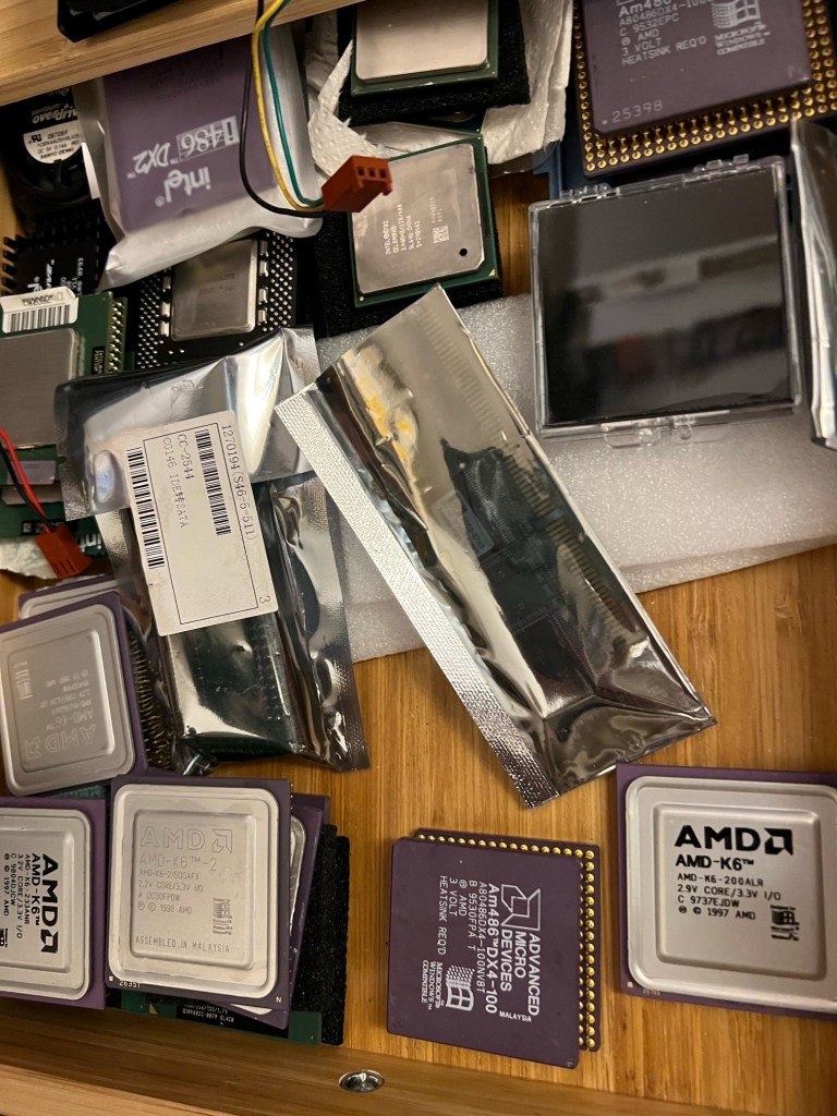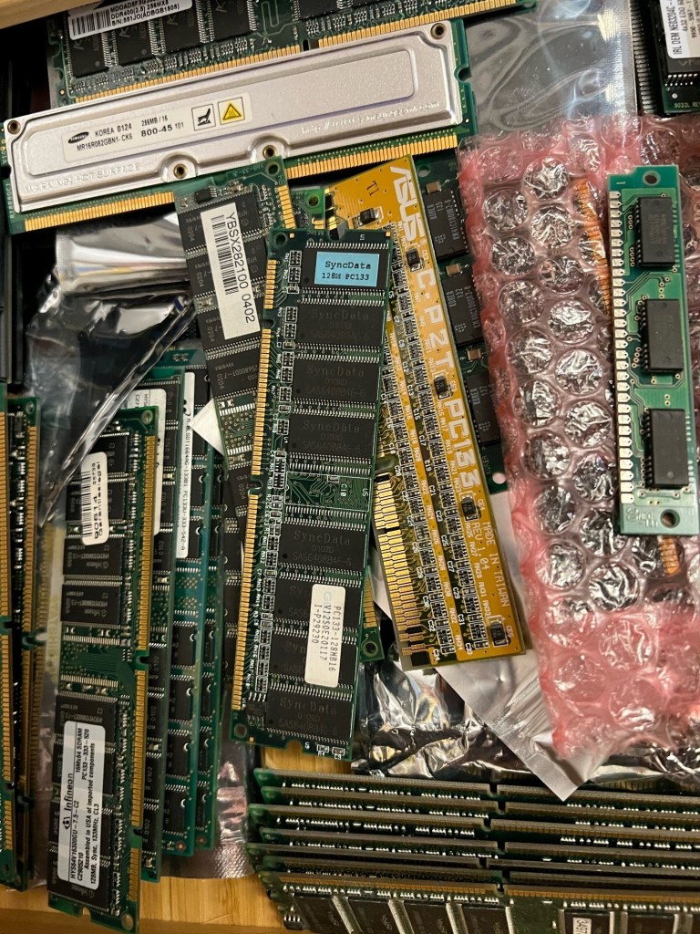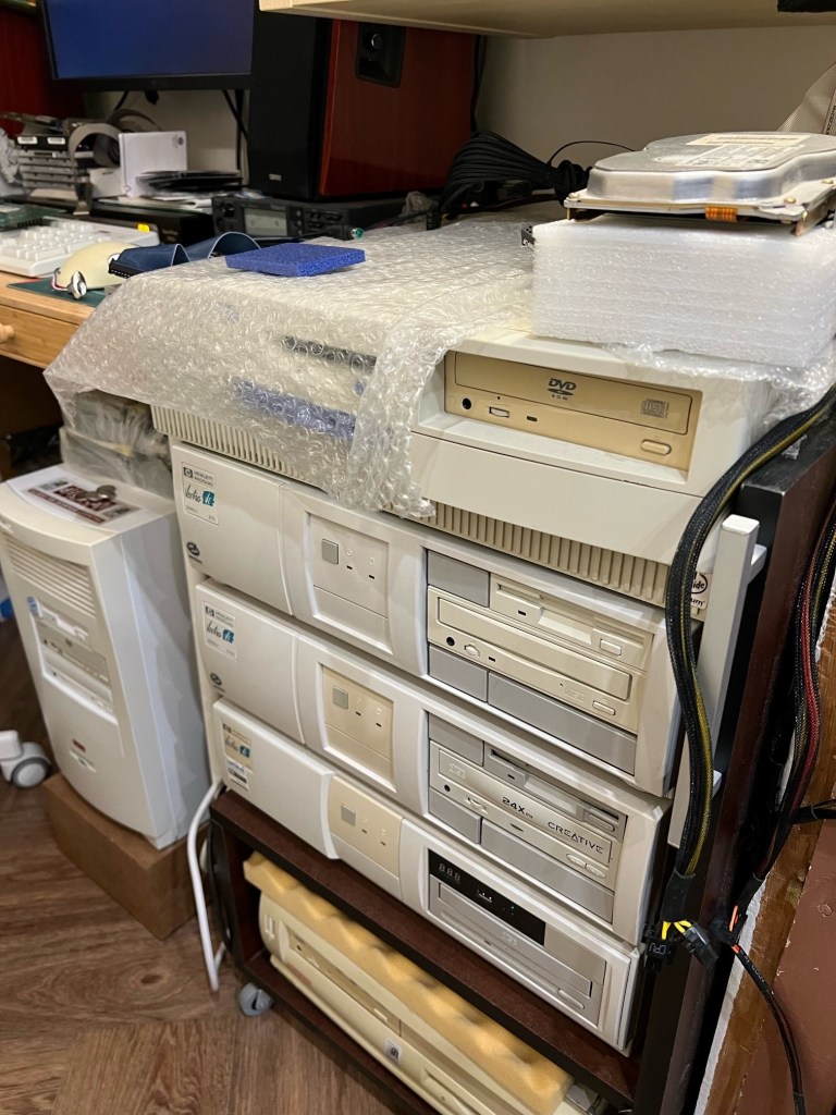昨日今日と、彼は愛するコンピュータールーム(と言ってもアパートメント住まいの我々にはちゃんとしたコンピュータールームがある訳ではなく、ボイラー室に手を加えてコンピュータールーム仕様にしただけ)の整理整頓、入手した部品のチェックを嬉々として行っていた。