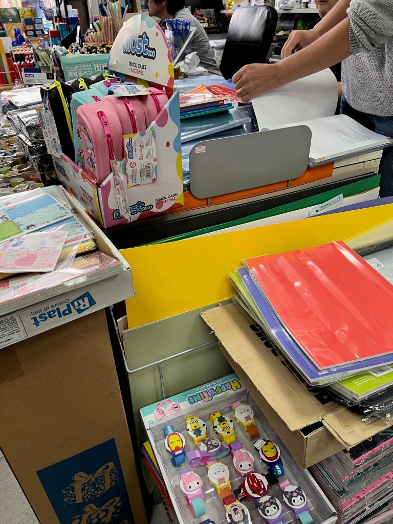 さてようやくお子達がリュックにいっぱいの教科書を入れて学校から出てくると、今度はアレが待っている。毎年恒例のアレ。。。そう、教科書全部にビニールのカバーをかけてもらいに再び文房具屋さんへ行き、長蛇の列に並ぶのである。